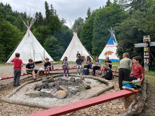 Die Klasse 3./4. B übernachtete im Tipidorf in Krattigen.